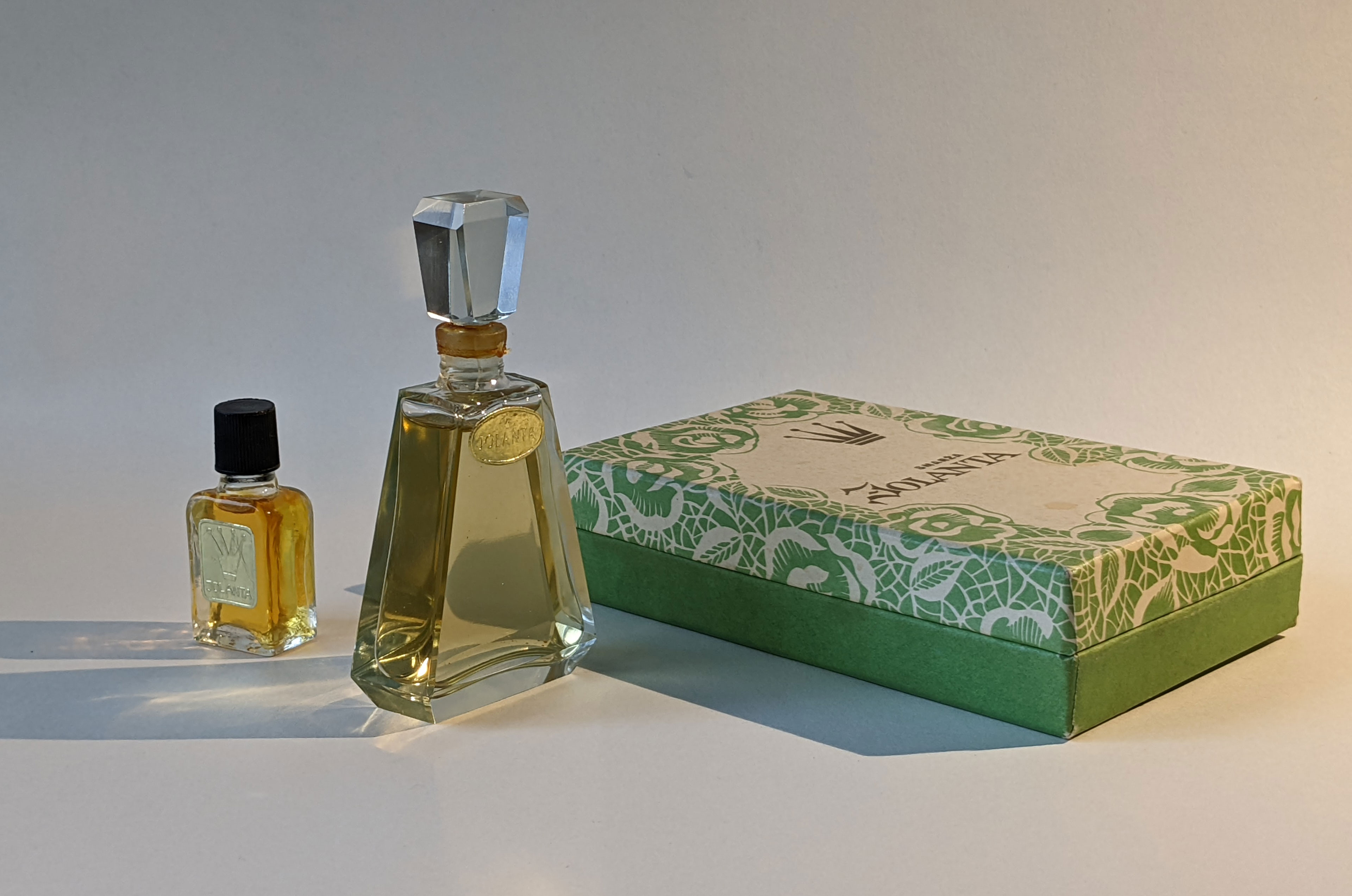 香水「ジョランタ」は「陰謀と愛(Kovarstvo i Lyubov)」と同じガラス栓付きボトルで発表された。両者はしばしば関連付けられるが、このボトルは1964年(陰謀の2年前)にデビューしたジョランタ専用にデザインされたものである。