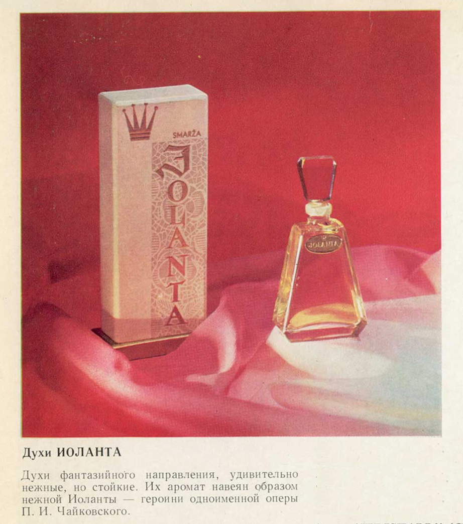 ブロニスラヴァ・シュヴァルツマンは文学や舞台芸術から着想を得る際、常に崇高なヒロインに惹かれ、比類なき繊細さと洗練を備えた香水を生み出した。彼女は『ジョランタ』をチャイコフスキーの同名オペラの主人公に捧げた——この献辞はソ連の香水カタログに正式に記録されている。