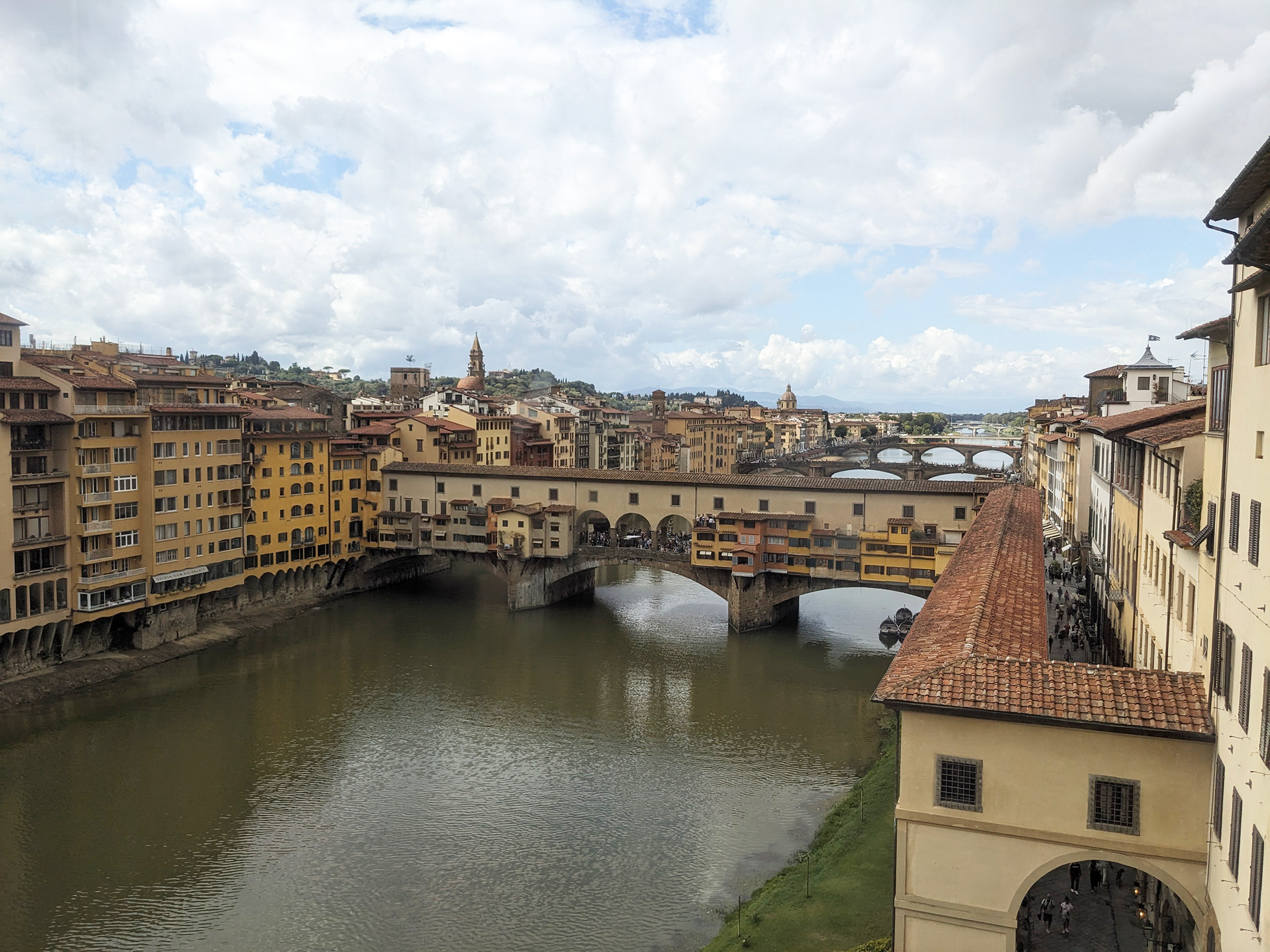 ウフィツィ美術館の窓から望むポンテ・ヴェッキオとヴァザーリの回廊