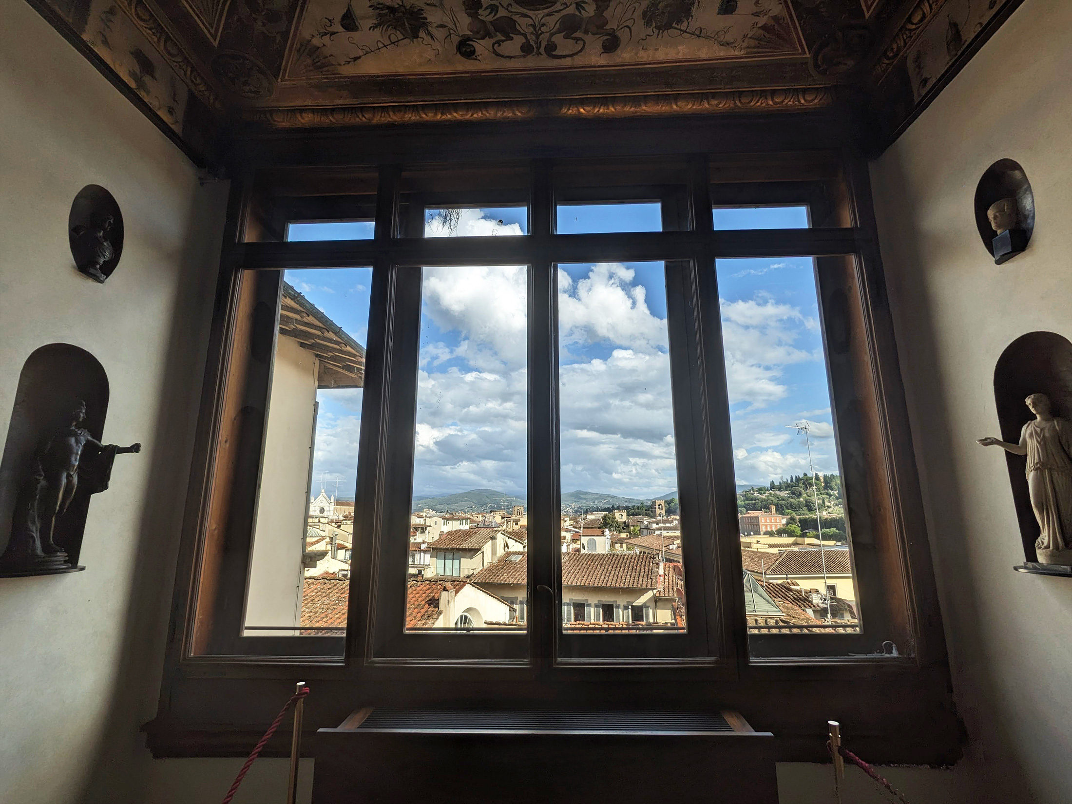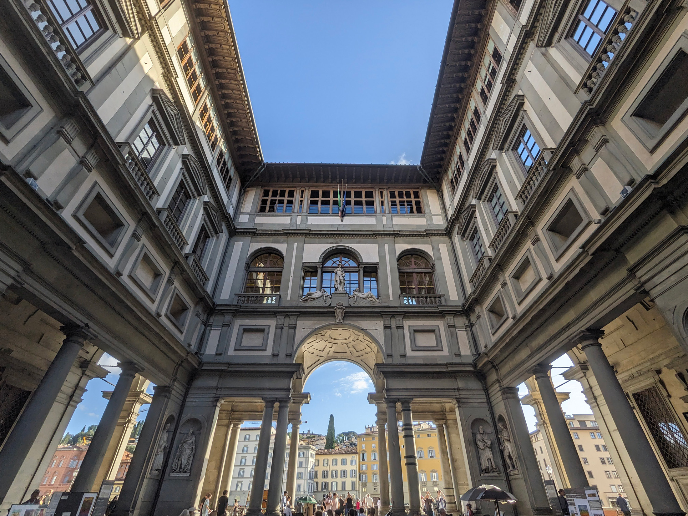 ウフィツィ美術館の中庭と、美術館の窓からの眺め(下)