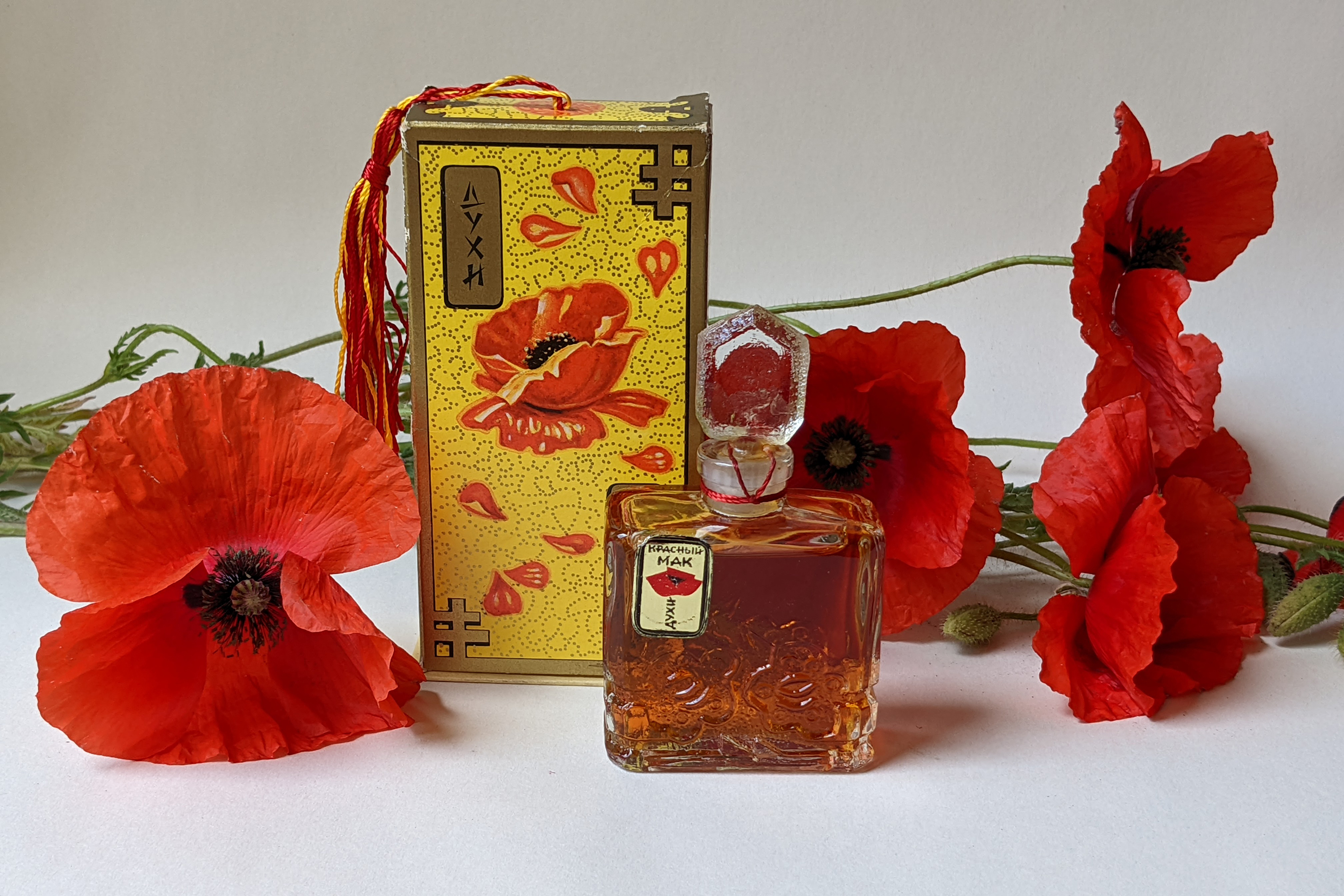 困難な歴史的状況下において、人々は居心地の良い、暖かく甘い香りを渇望することが昔から指摘されていますが、70年以上にわたるソ連の歴史はまさにそうした状況に満ちていました。国民が半ば飢餓状態に置かれ、果物やフルーツの砂糖漬け、キャラメル、焼き菓子、チョコレートが、休日でさえ多くの人にとって手の届かない贅沢品であった時代もありました。しかし、1960年代や1970年代のような経済的に最も恵まれた時代であっても、苦難の時代の記憶は非常に強く残っていたため、ペストリーやスイーツの香りは、大半のソビエトの人々にとって、常に安らぎや幸福、そして豊かさと結びついていました。だからこそ、1929年に作られた率直にグルマンな "Krasny Mak" (Red Poppy) は、ソビエト香水界の不滅のヒット作となり、1980年代後半まで順調に売れ続けたのです。