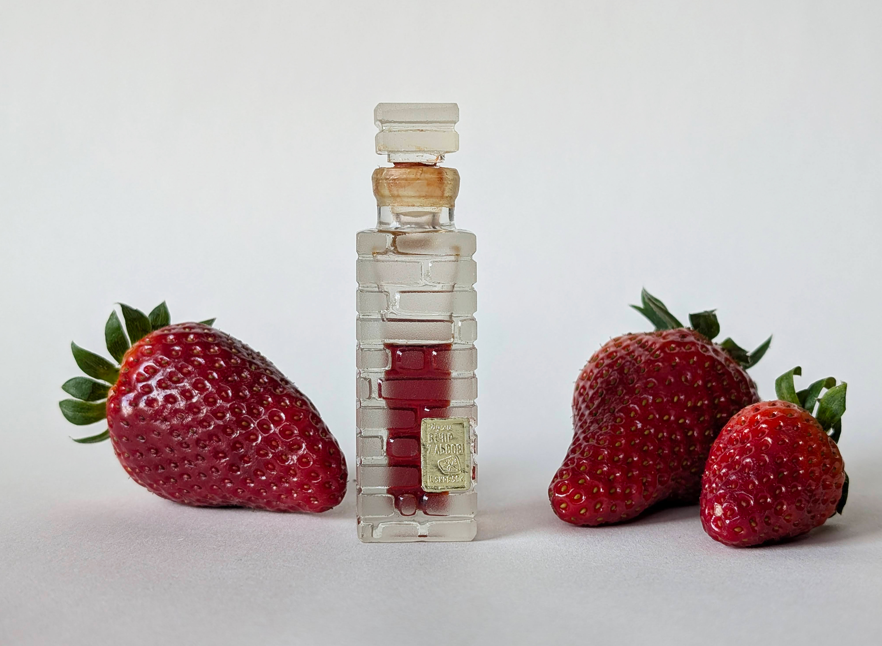 しかし、Lviv 工場には完全にグルマン系のフレグランスもありました。非常に甘いストロベリーとバニラパンの香りがする "Vecher vo Lvove" (Evening in Lviv) です。このコンポジションは驚くほど現代的に感じられます。例えば、フローラルアコードにはピオニーのノートがあり、ベースは非常に軽やかでムスキーです。もし Lviv 工場にさらに生産能力があり、Evening in Lviv が1980年代まで存続していたなら、人気において Dialogue と競い合っていたかもしれません。しかし、傑作であるピオニー・ストロベリーの Evening in Lviv はローカルな製品にとどまりました。さらに言えば、時代を先取りしすぎていたため、Dialogue の発売よりも前に廃盤になってしまったのです。