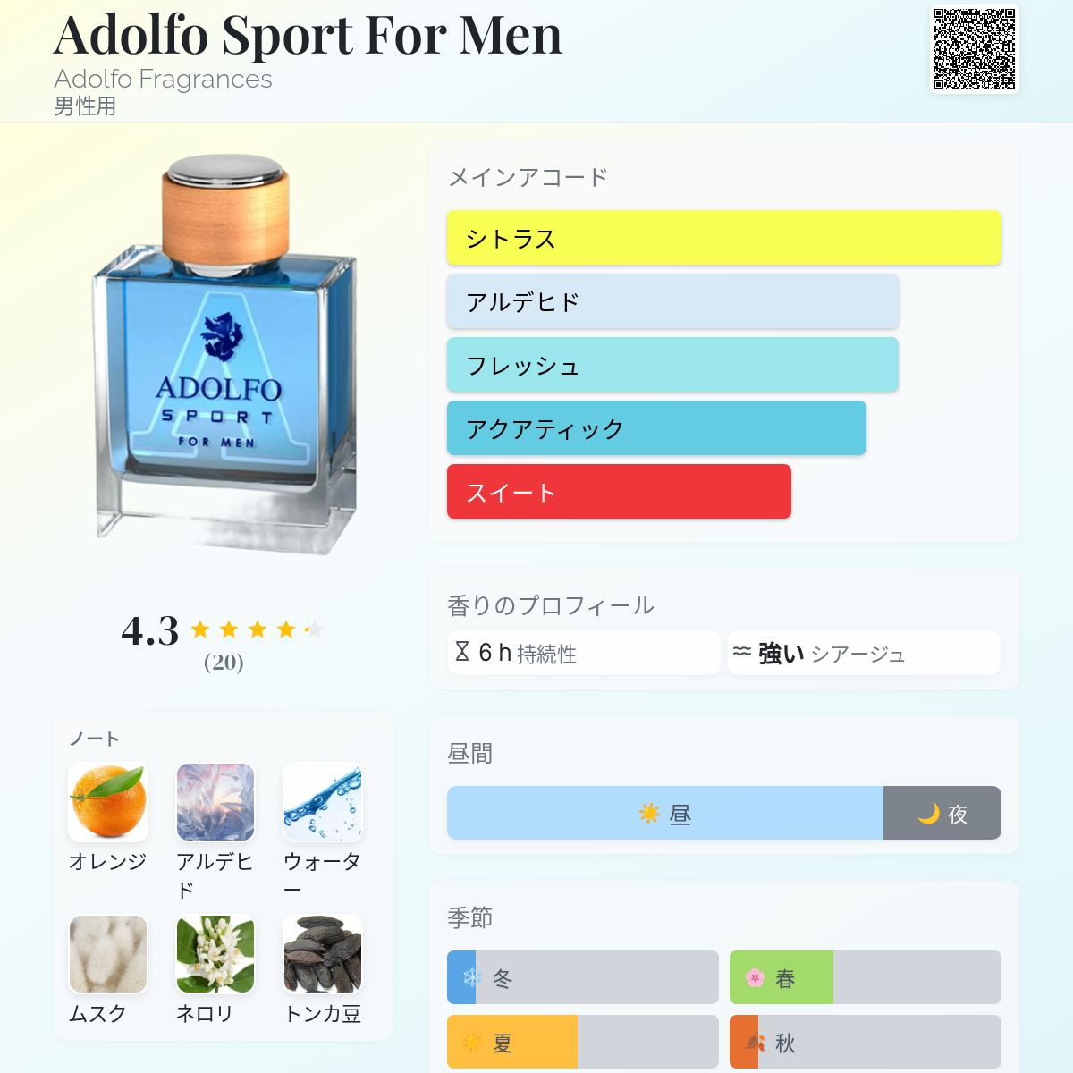 香水評価 4.30 / 5 投票数: 20 票