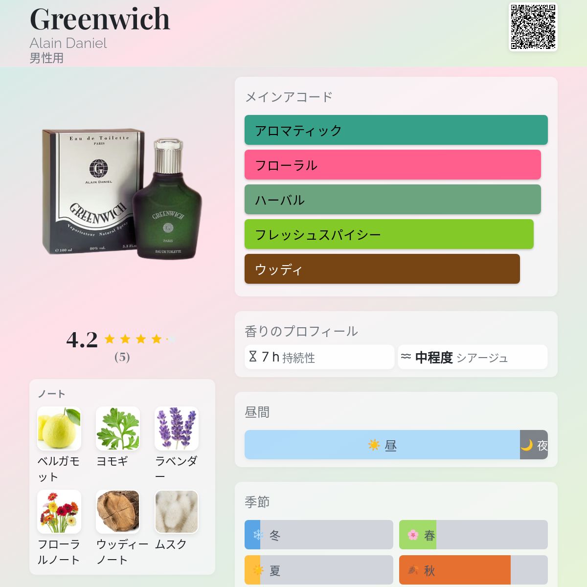 香水評価 4.20 / 5 投票数: 5 票