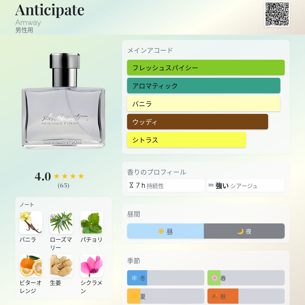 香水評価 4.00 / 5 投票数: 65 票