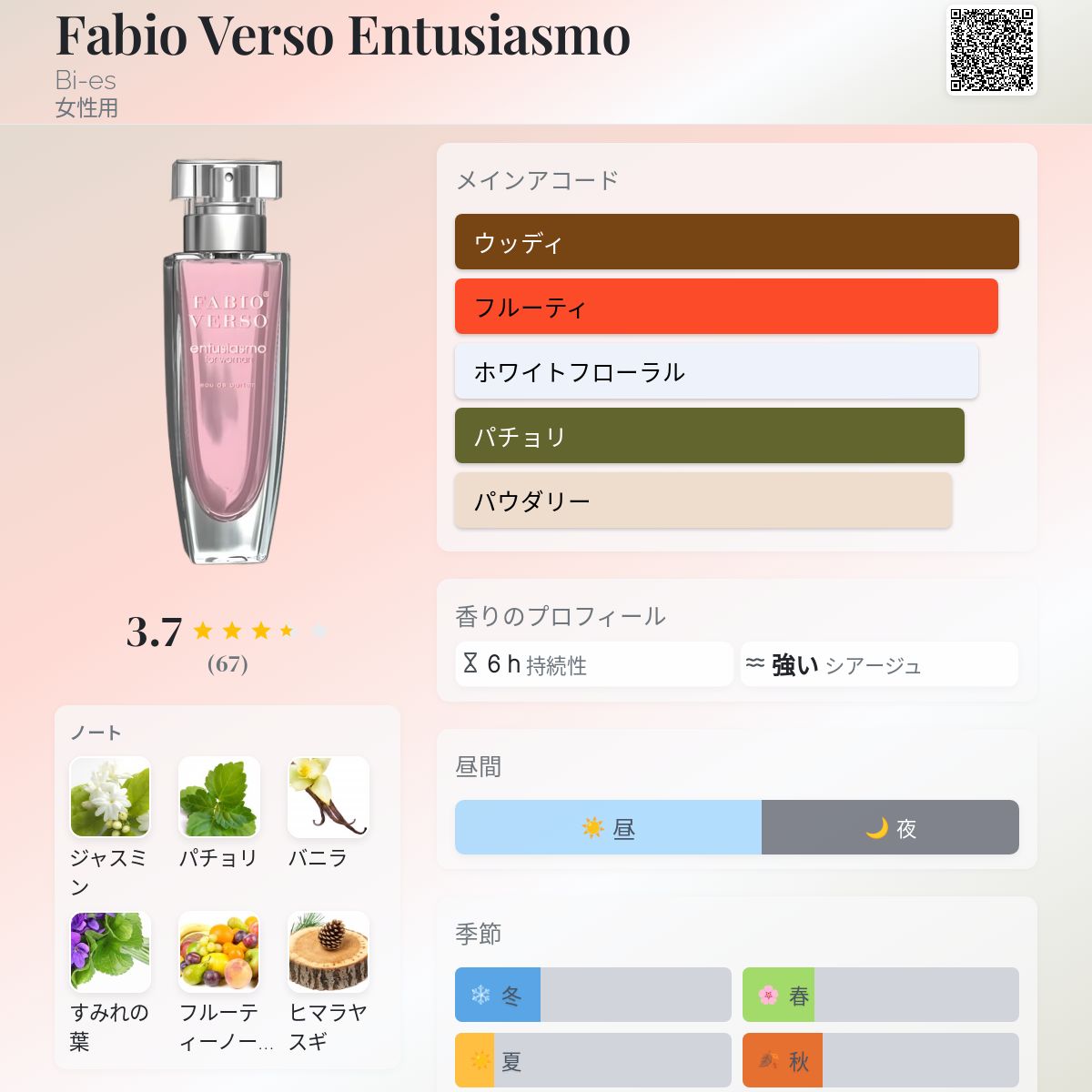 香水評価 3.67 / 5 投票数: 67 票