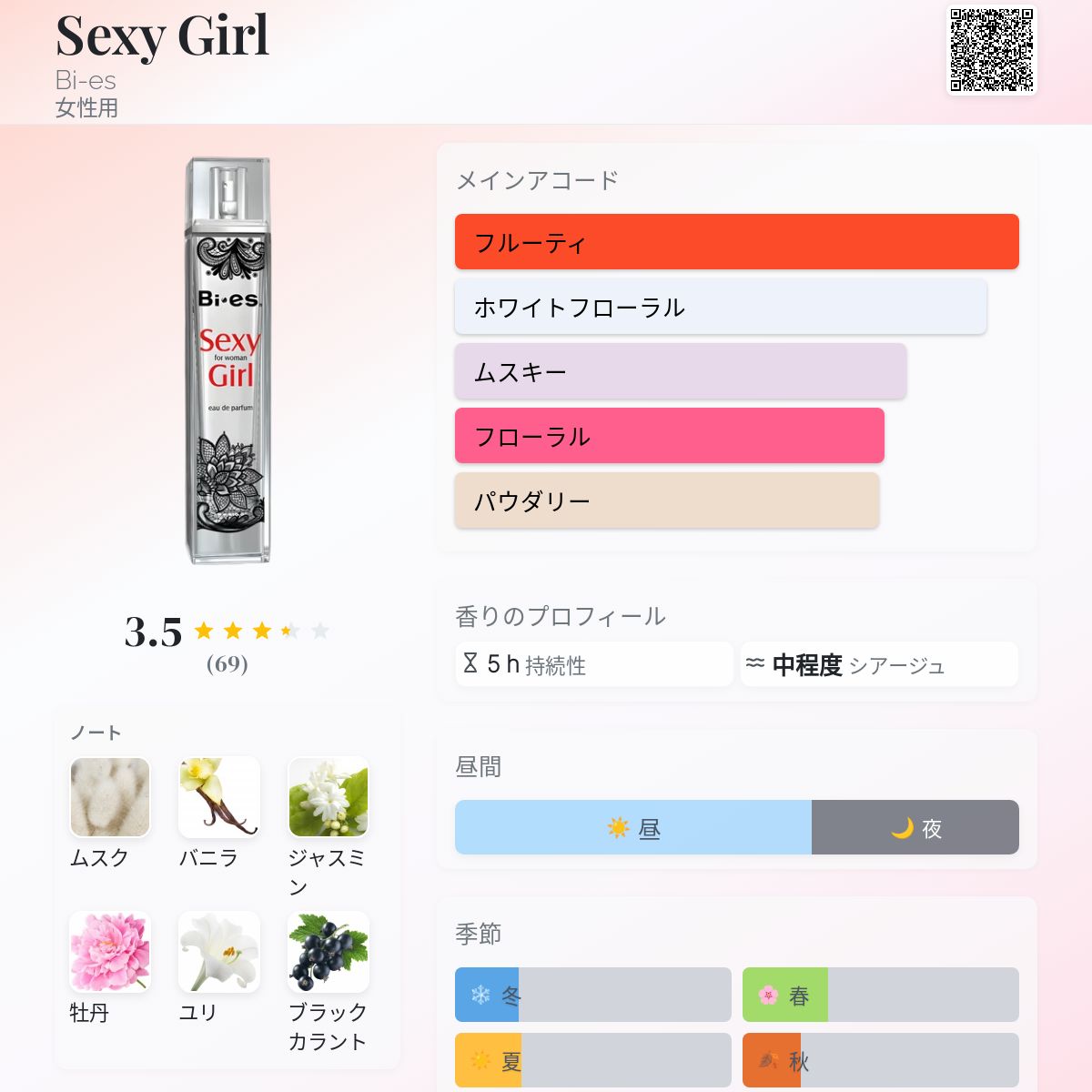 香水評価 3.54 / 5 投票数: 69 票