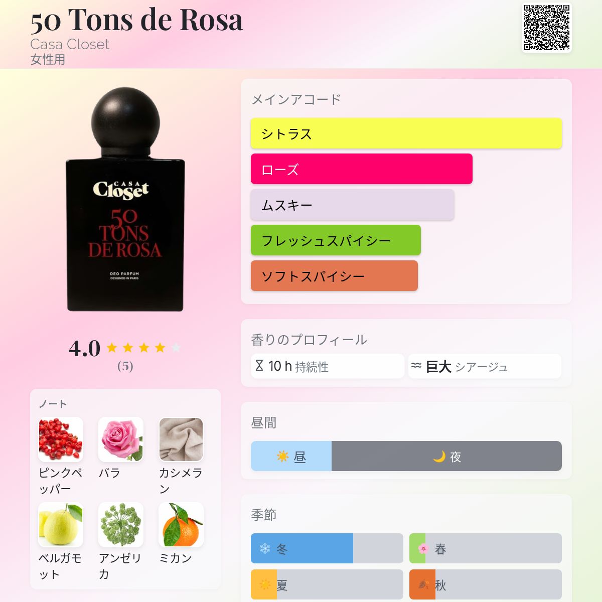香水評価 4.00 / 5 投票数: 5 票
