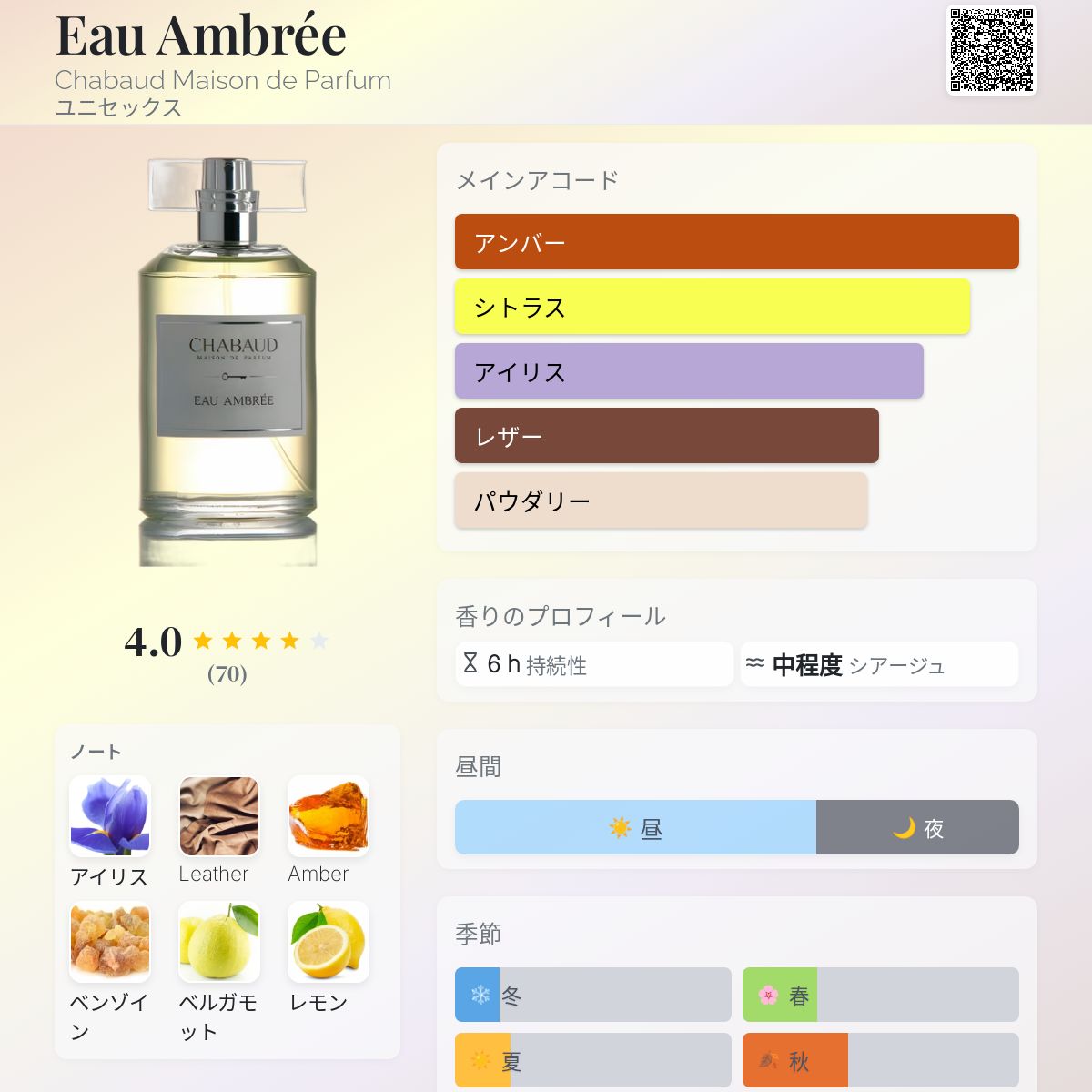 香水評価 3.96 / 5 投票数: 70 票
