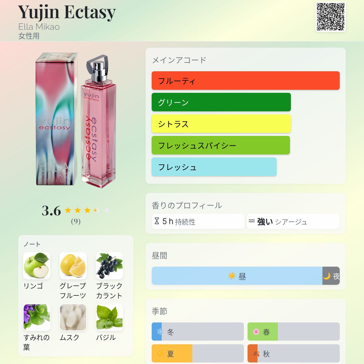 香水評価 3.56 / 5 投票数: 9 票