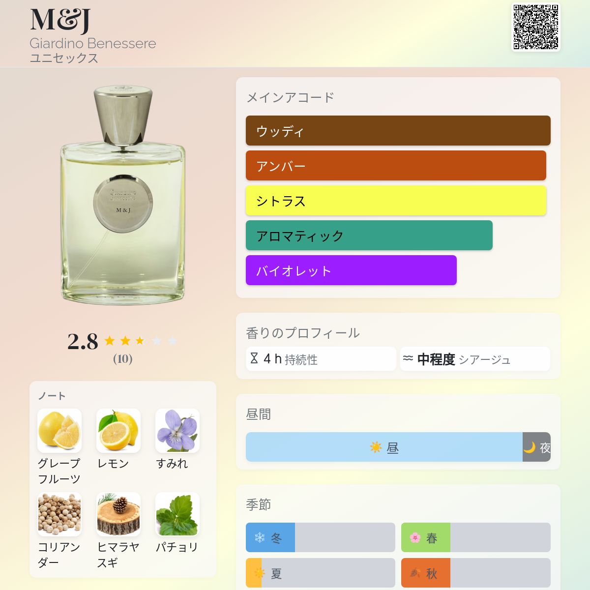 香水評価 2.80 / 5 投票数: 10 票