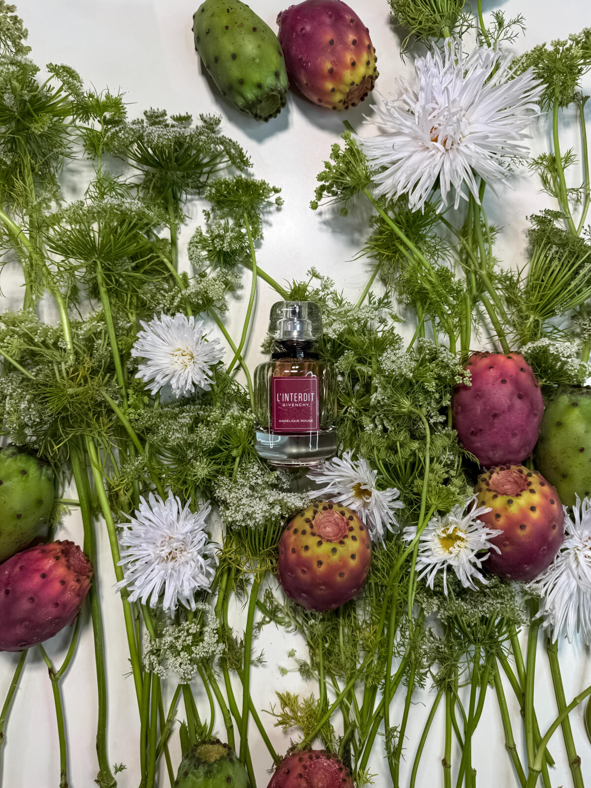 GivenchyのL'Interdit Angélique Rougeは女性用向けのオリエンタルウッディフレグランスです。 これは新しいフレグランスです。 L'Interdit Angélique Rougeは2025年に発売されました。 このフレグランスの調香師はTakasagoです。 トップノートはアンゼリカ, サボテン と 生姜、 ミドルノートは白い花 と アンゼリカ、 ベースノートはベチバー と パチョリです。
