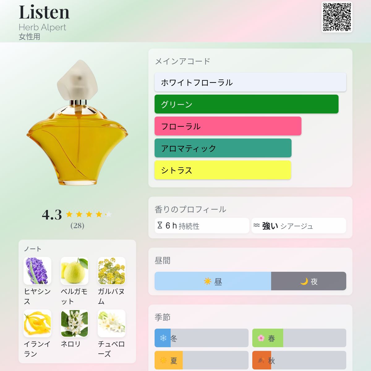 香水評価 4.25 / 5 投票数: 28 票