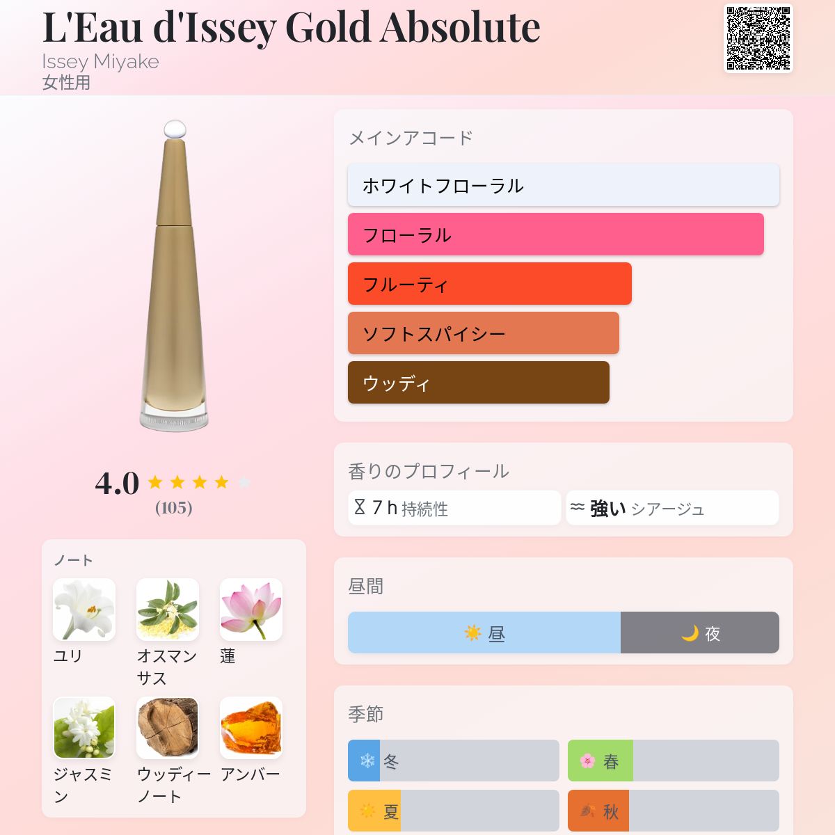 香水評価 3.96 / 5 投票数: 105 票