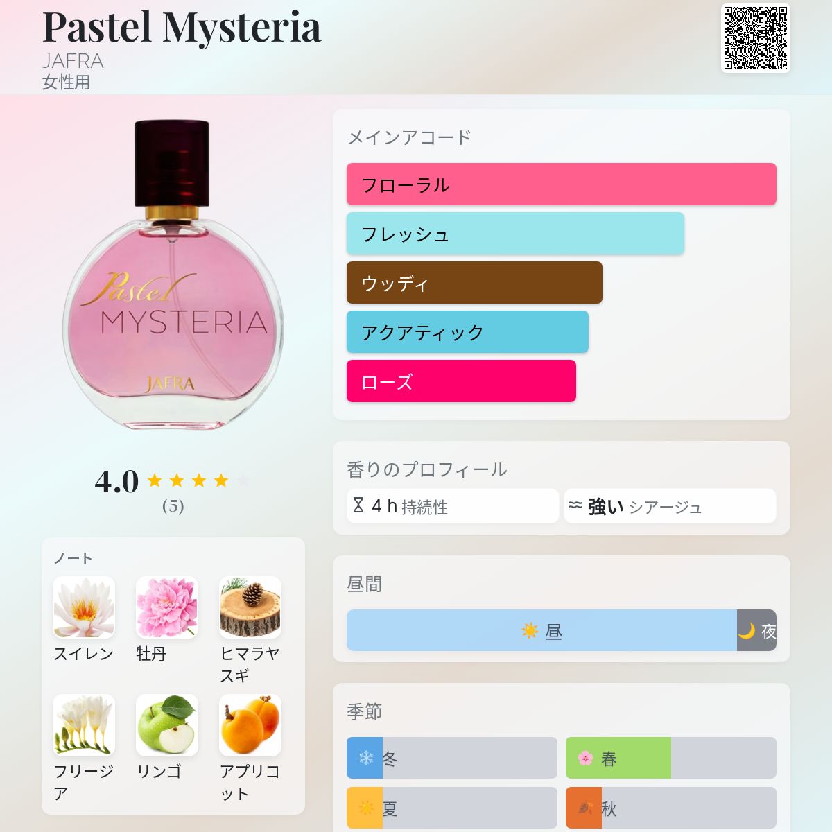 香水評価 4.00 / 5 投票数: 5 票