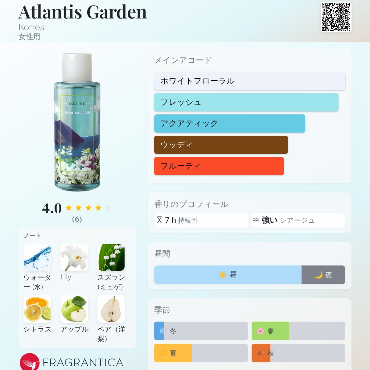 香水評価 4.00 / 5 投票数: 6 票