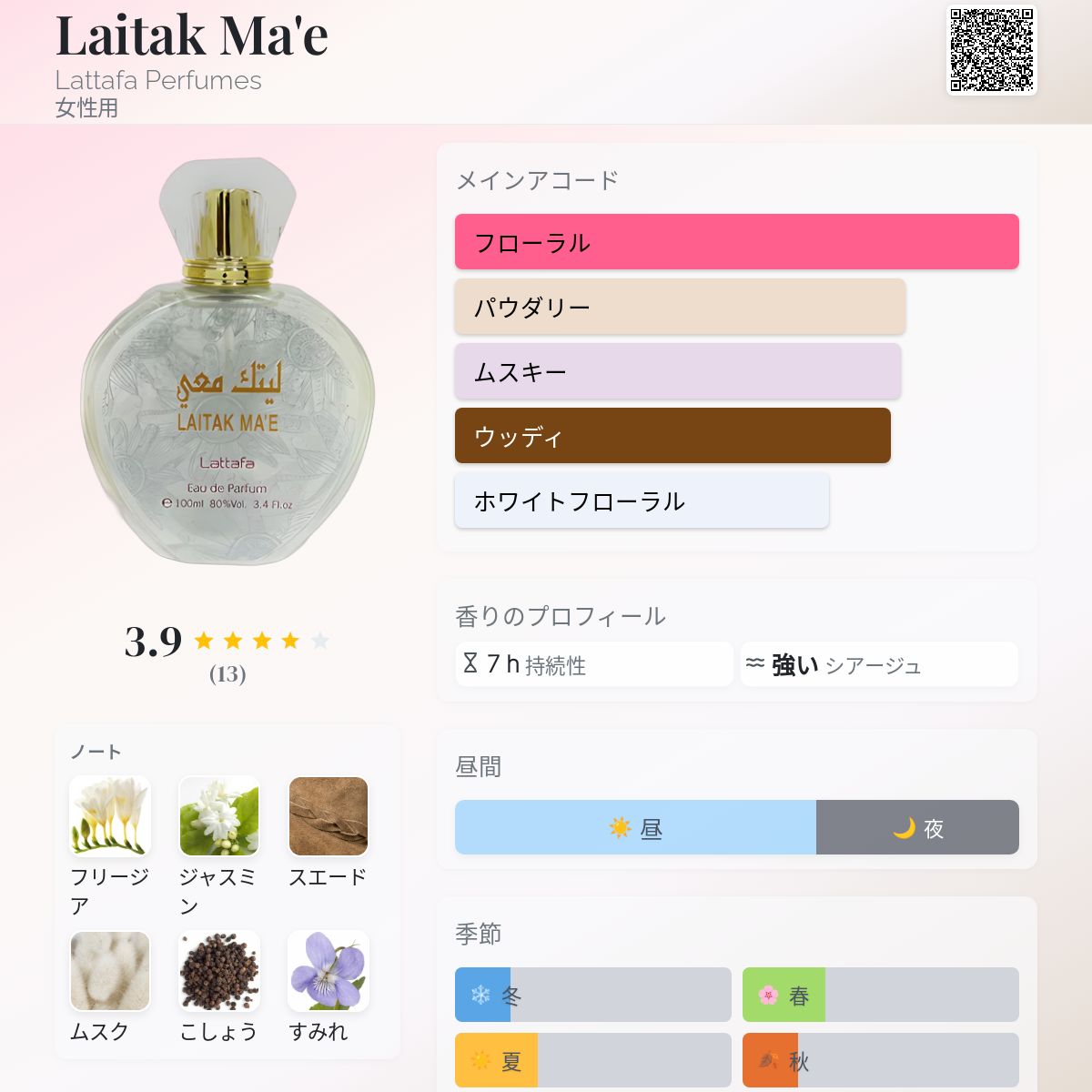 香水評価 3.92 / 5 投票数: 13 票