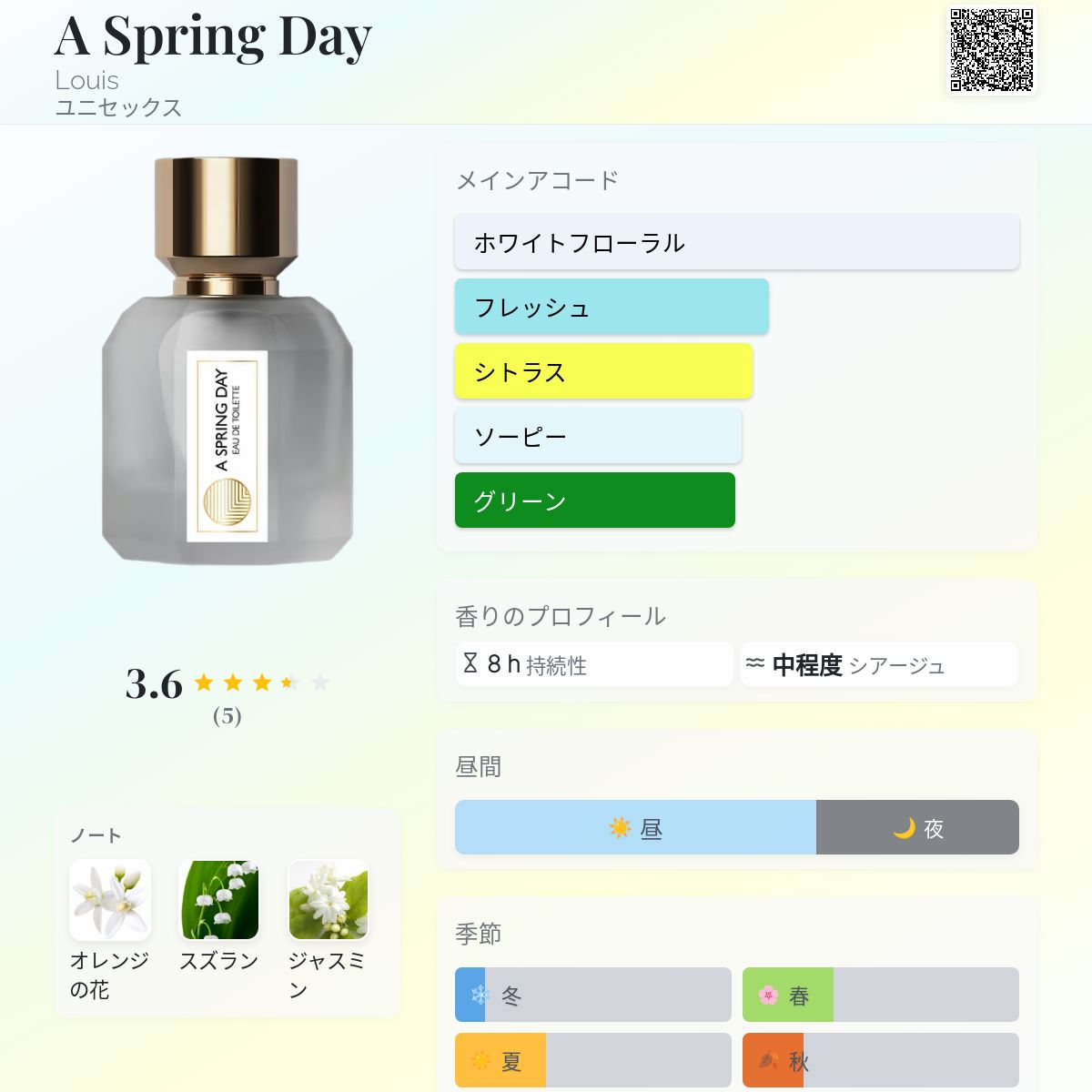 香水評価 3.60 / 5 投票数: 5 票