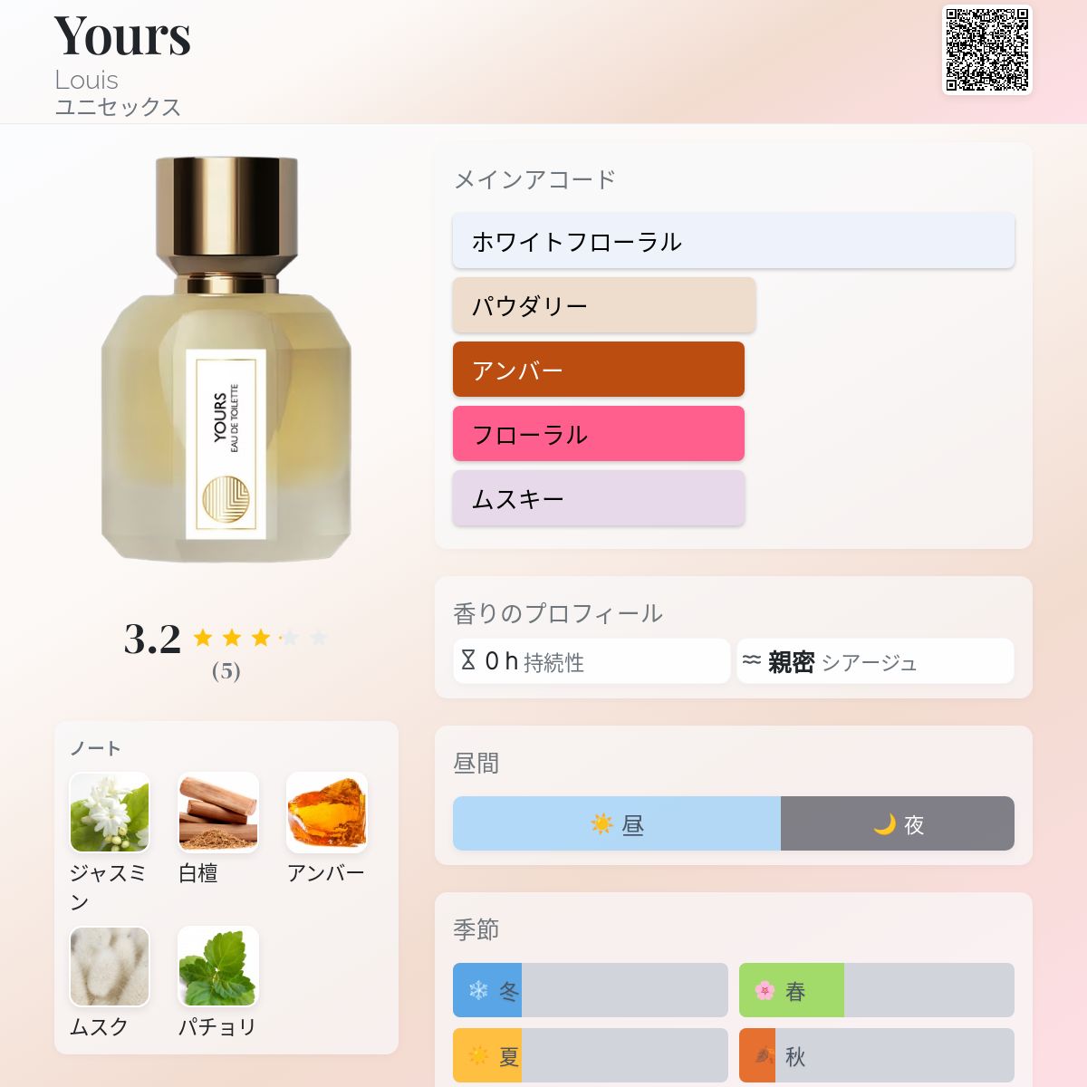 香水評価 3.20 / 5 投票数: 5 票