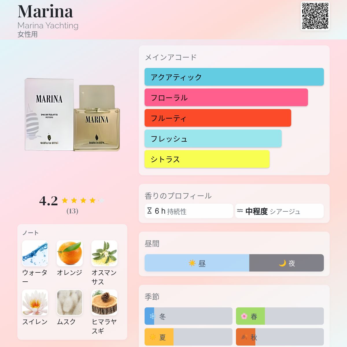 香水評価 4.15 / 5 投票数: 13 票