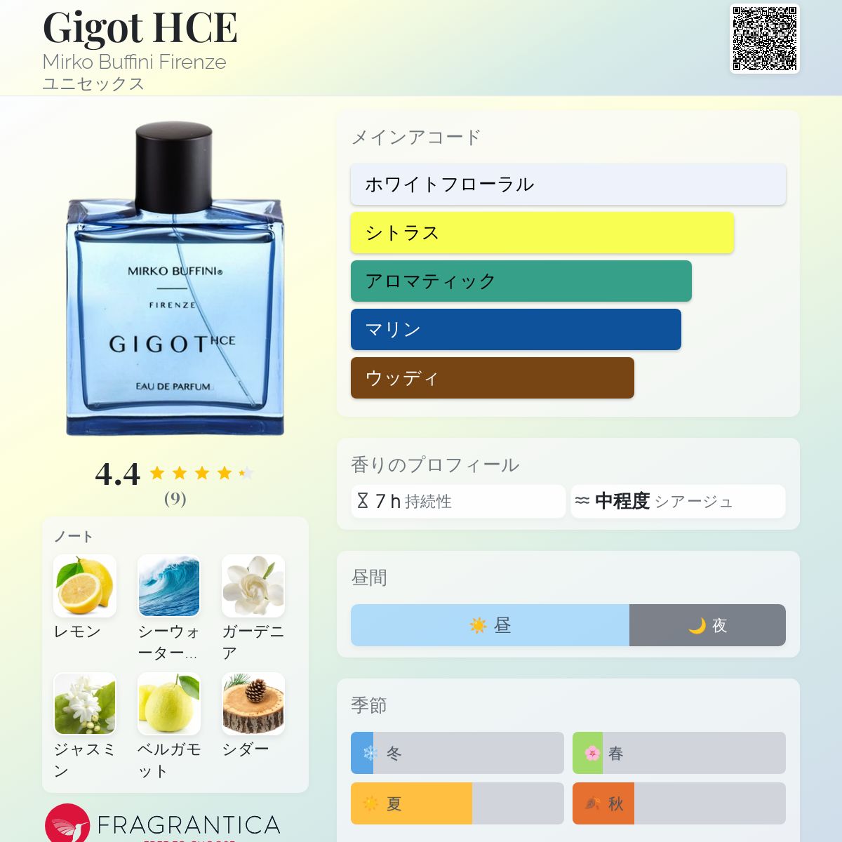香水評価 4.44 / 5 投票数: 9 票