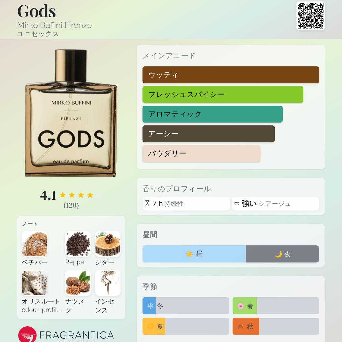 香水評価 4.12 / 5 投票数: 121 票