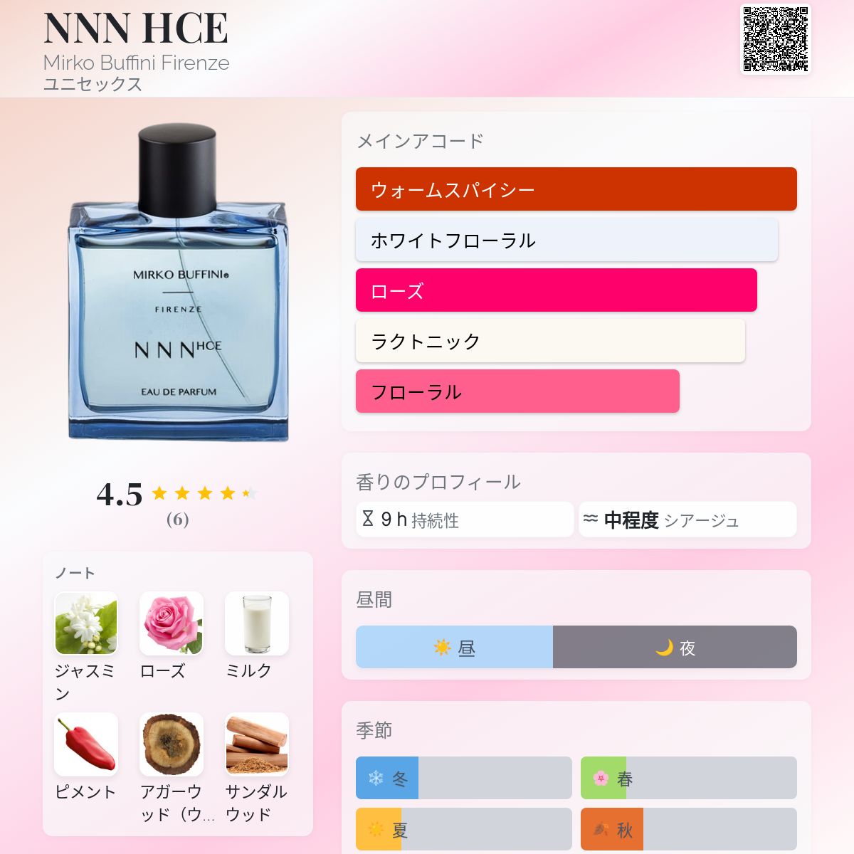 香水評価 4.50 / 5 投票数: 6 票