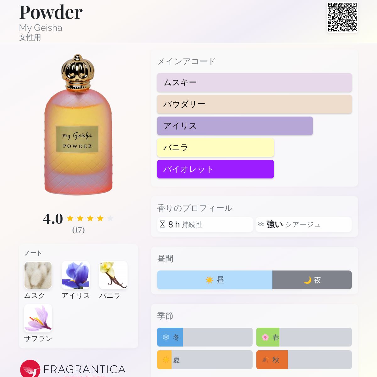 香水評価 4.00 / 5 投票数: 17 票
