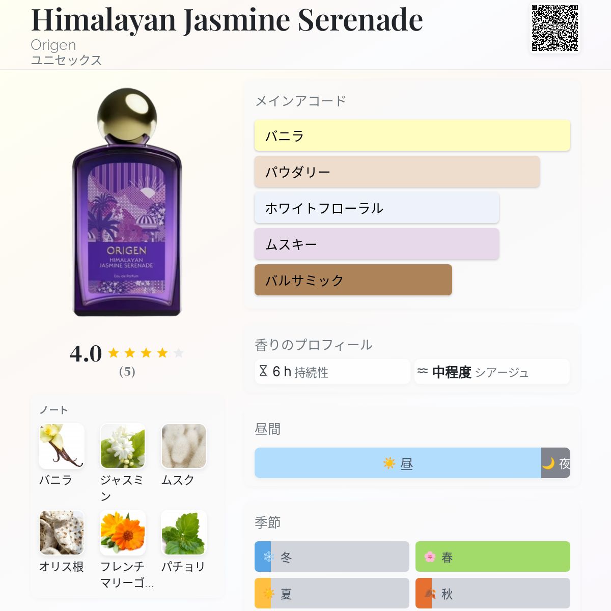 香水評価 4.00 / 5 投票数: 5 票