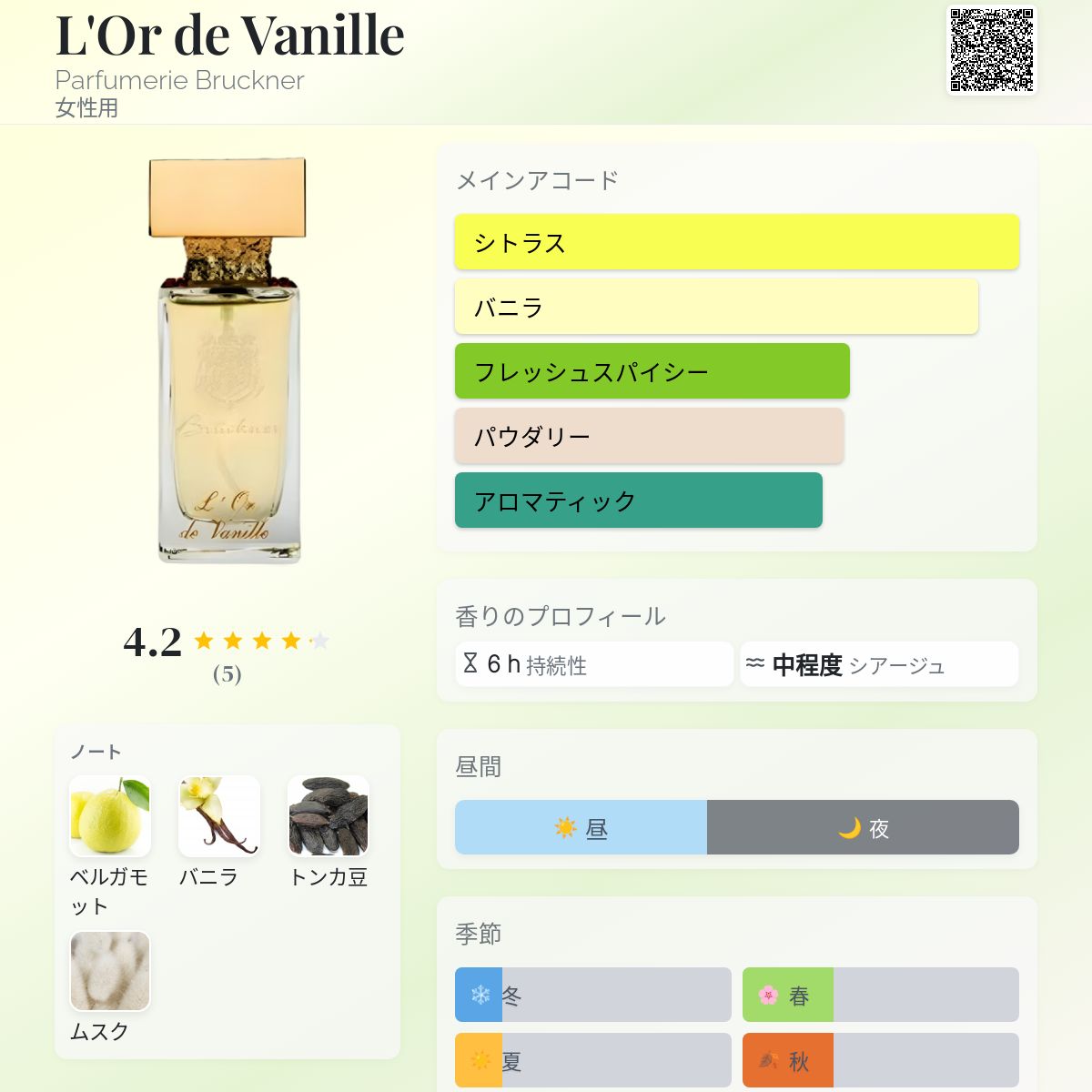 香水評価 4.20 / 5 投票数: 5 票