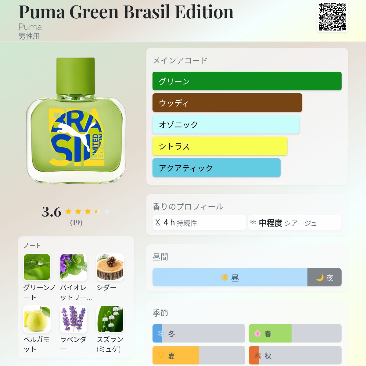 香水評価 3.63 / 5 投票数: 19 票
