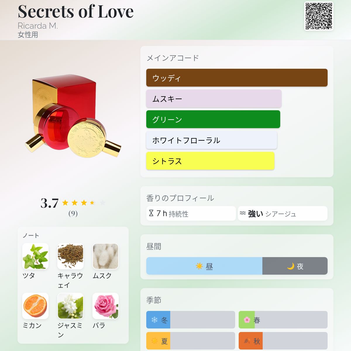 香水評価 3.67 / 5 投票数: 9 票