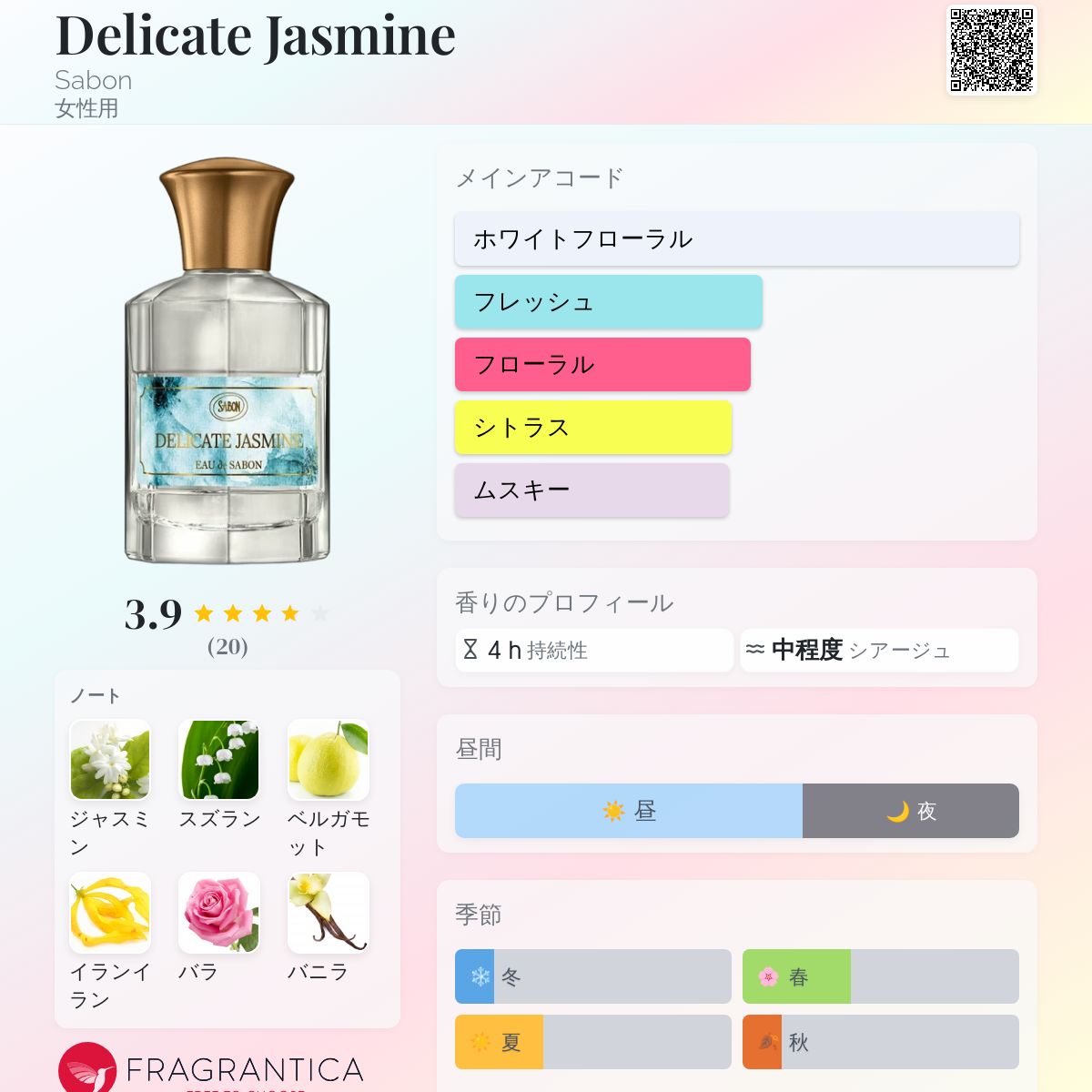 香水評価 3.90 / 5 投票数: 20 票