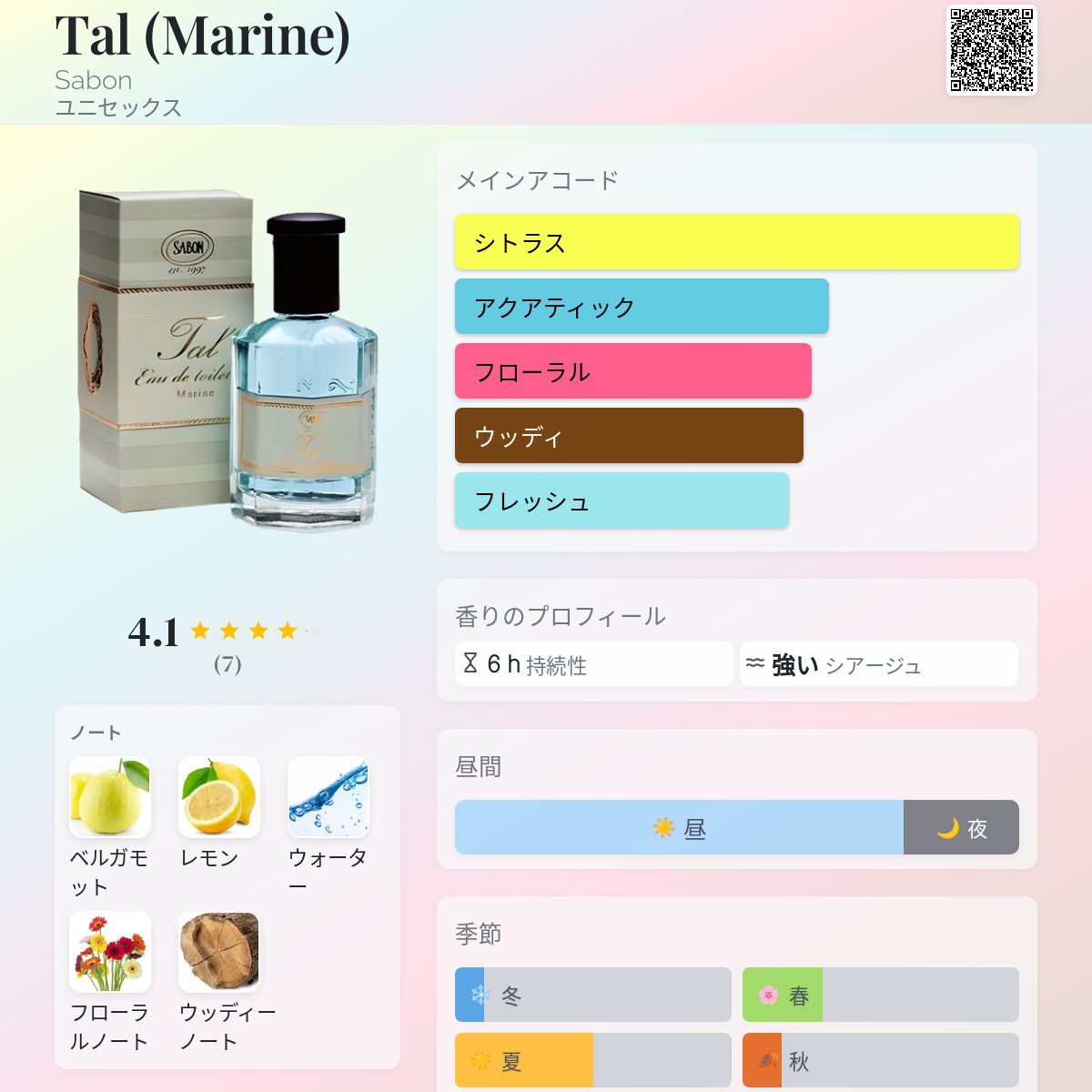 香水評価 4.14 / 5 投票数: 7 票