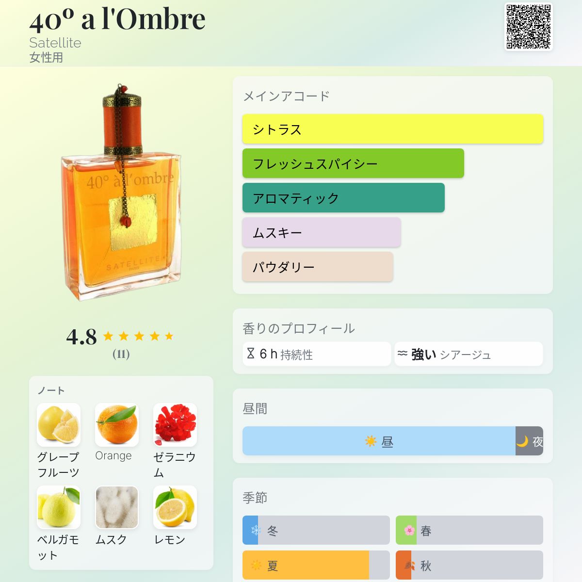 香水評価 4.82 / 5 投票数: 11 票