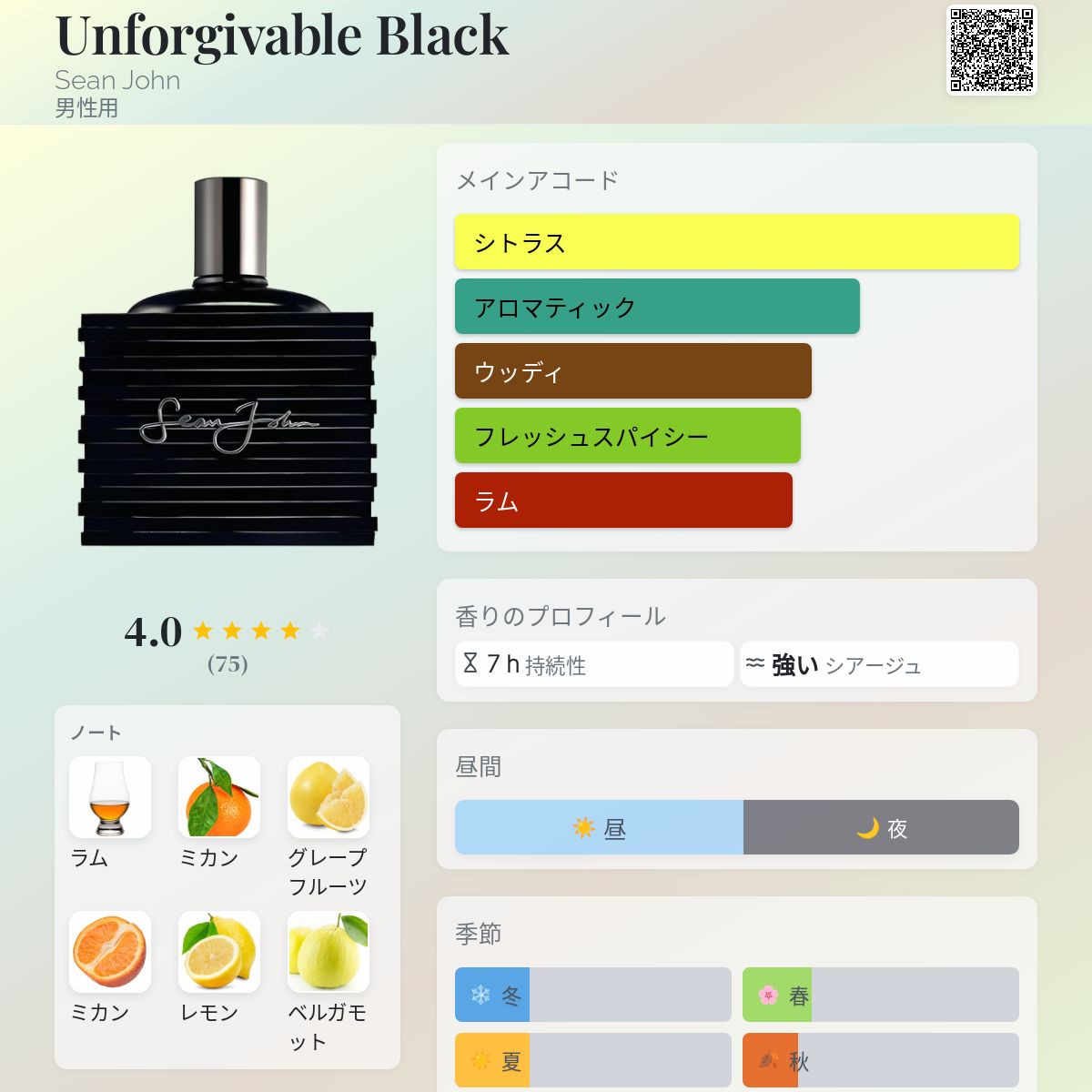 香水評価 4.00 / 5 投票数: 75 票