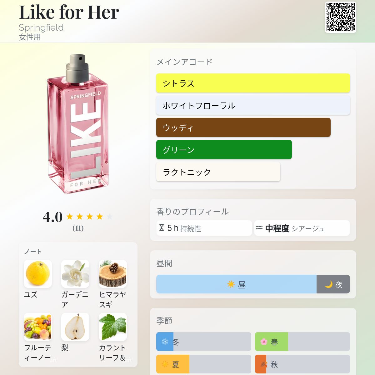香水評価 4.00 / 5 投票数: 11 票