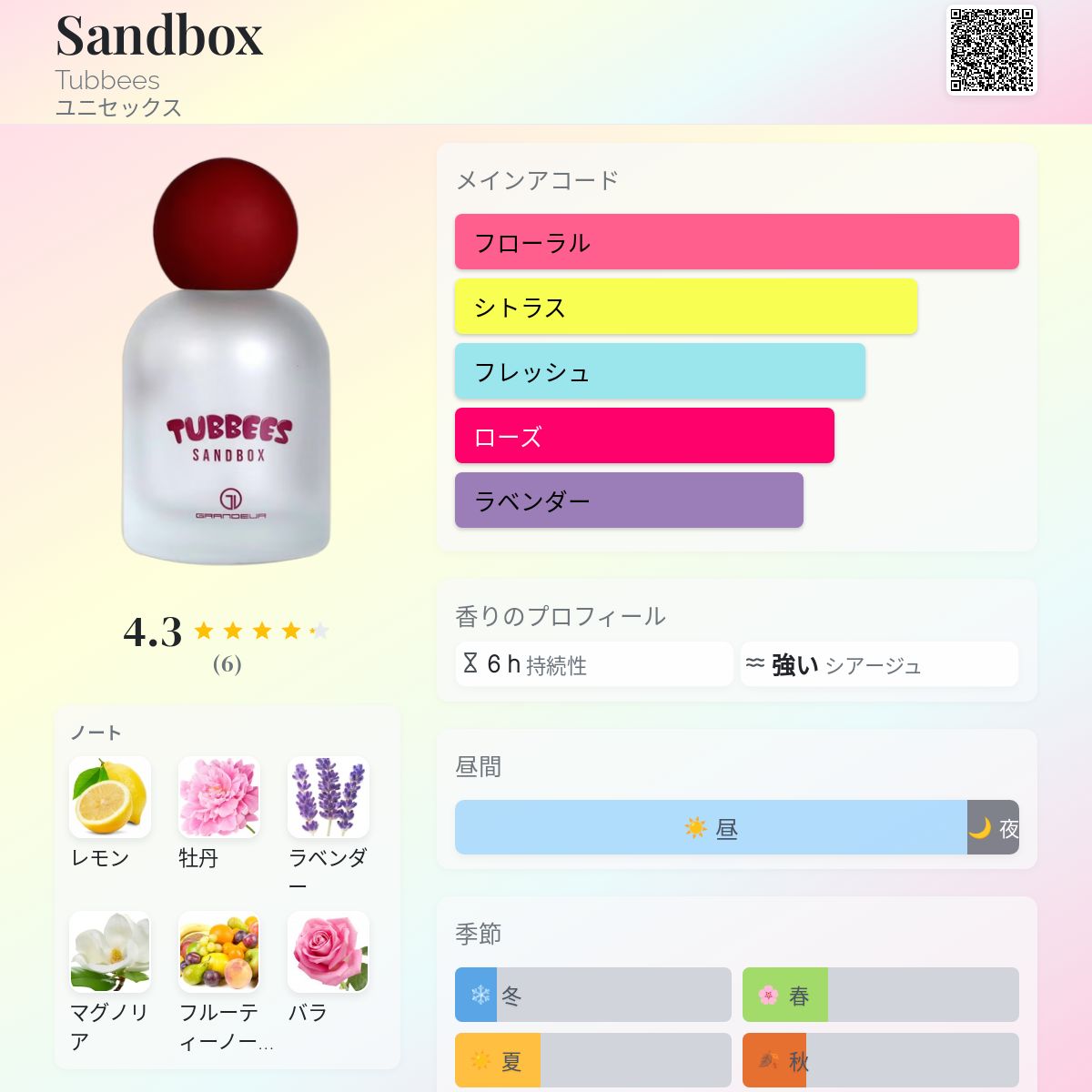 香水評価 4.33 / 5 投票数: 6 票