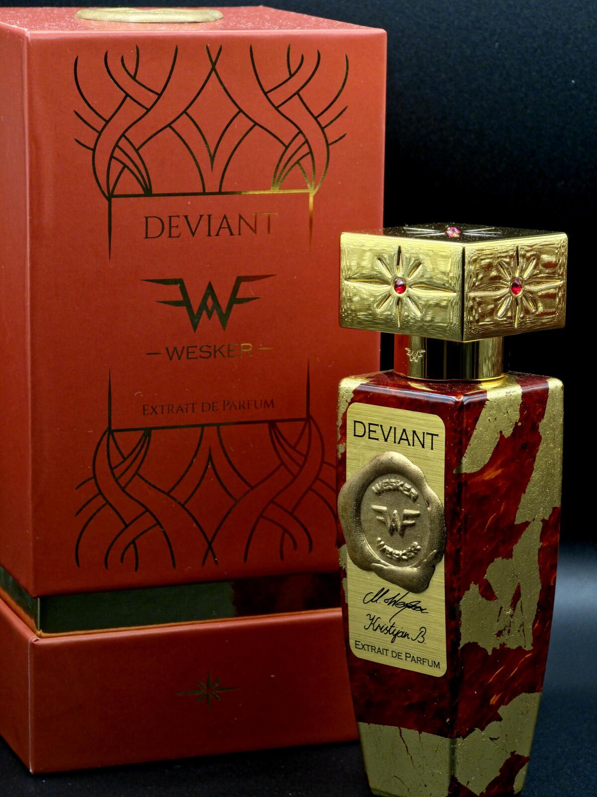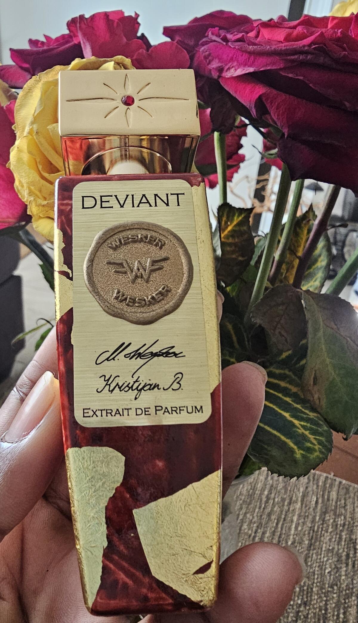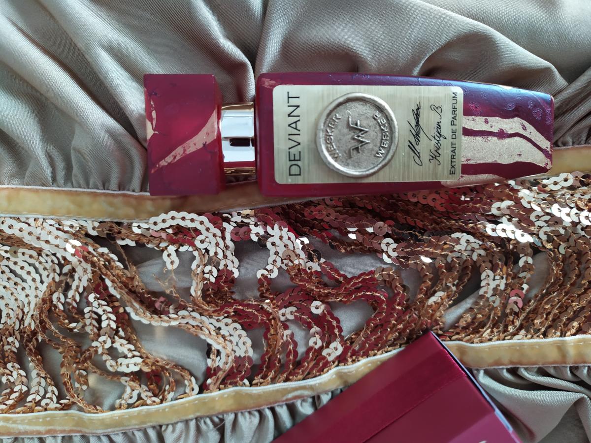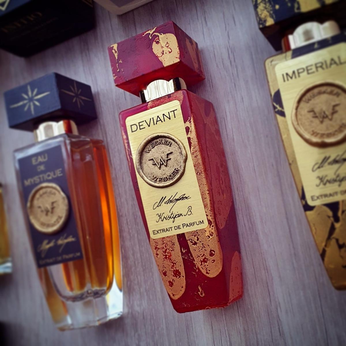WeskerのDeviantは女性用向けのフレグランスです。 Deviantは2020年に発売されました。 トップノートはぶどう, ラズベリー, イランイラン と グレープフルーツ、 ミドルノートはバラ, キャラメル, ブラックカラント と オリス根、 ベースノートは口紅, 革, バニラ, アガロウッド (ウッド) と タバコです。