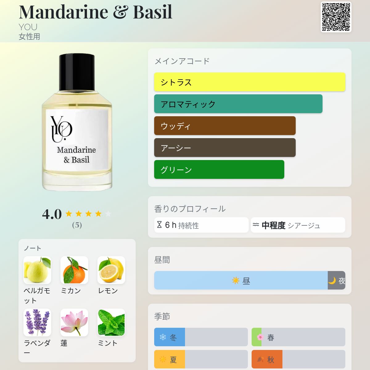 香水評価 4.00 / 5 投票数: 5 票