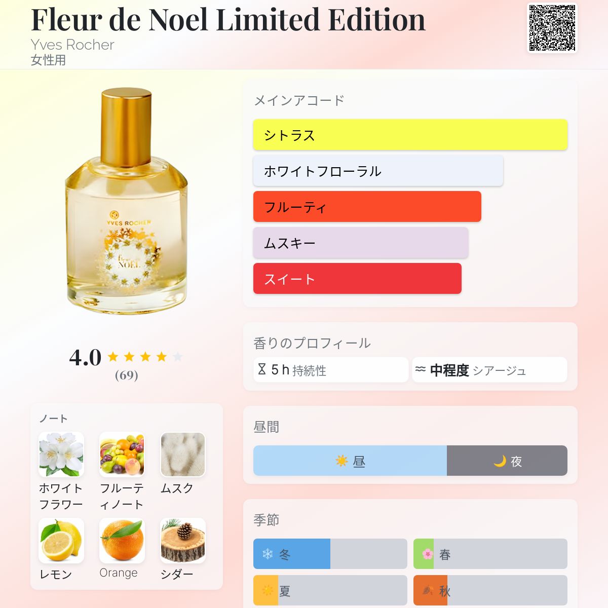 香水評価 3.99 / 5 投票数: 69 票