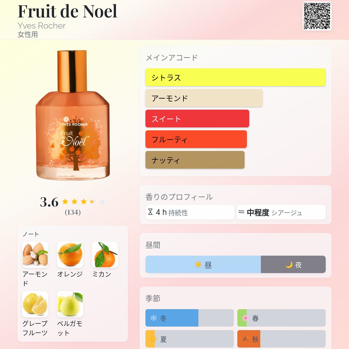 香水評価 3.64 / 5 投票数: 134 票