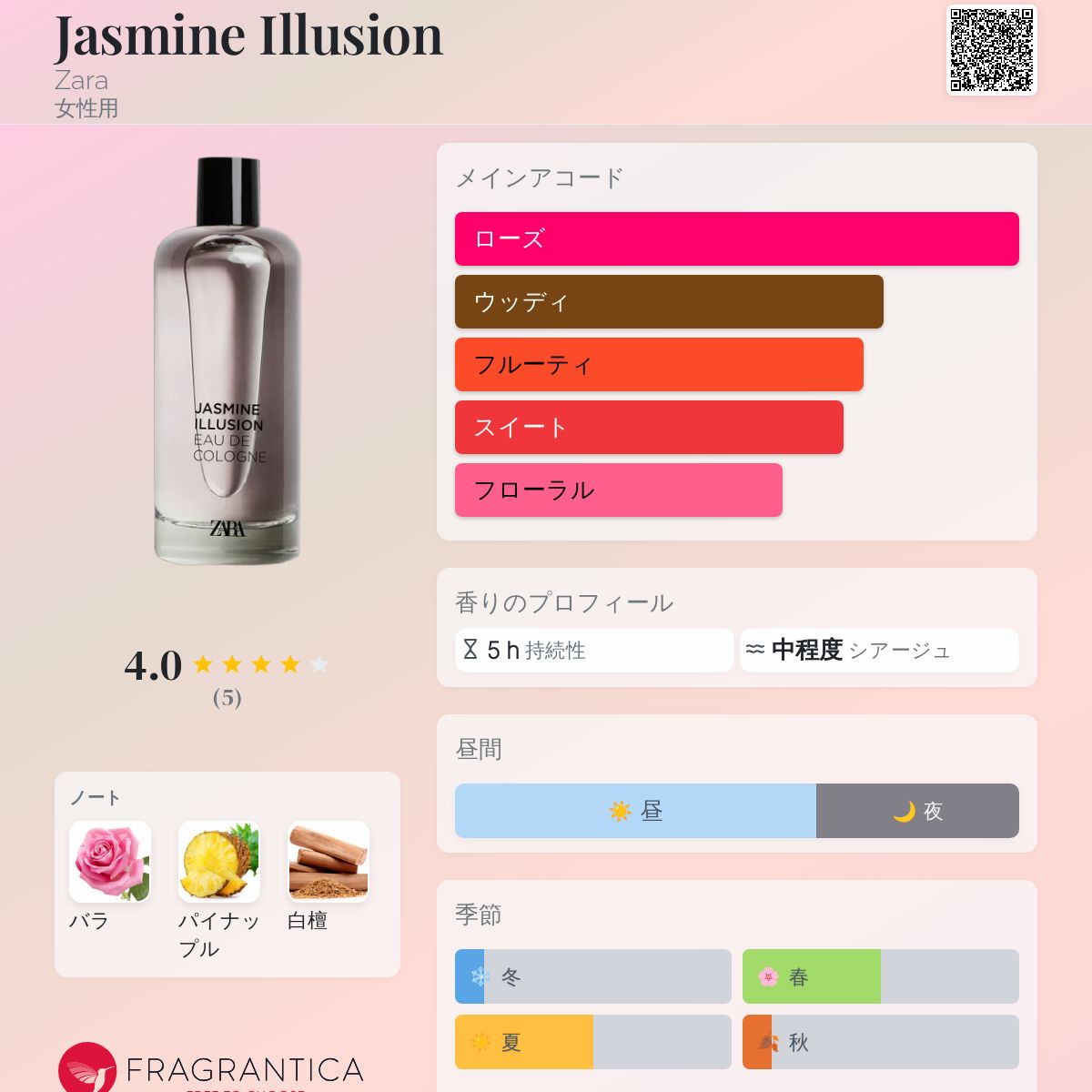 香水評価 4.00 / 5 投票数: 5 票